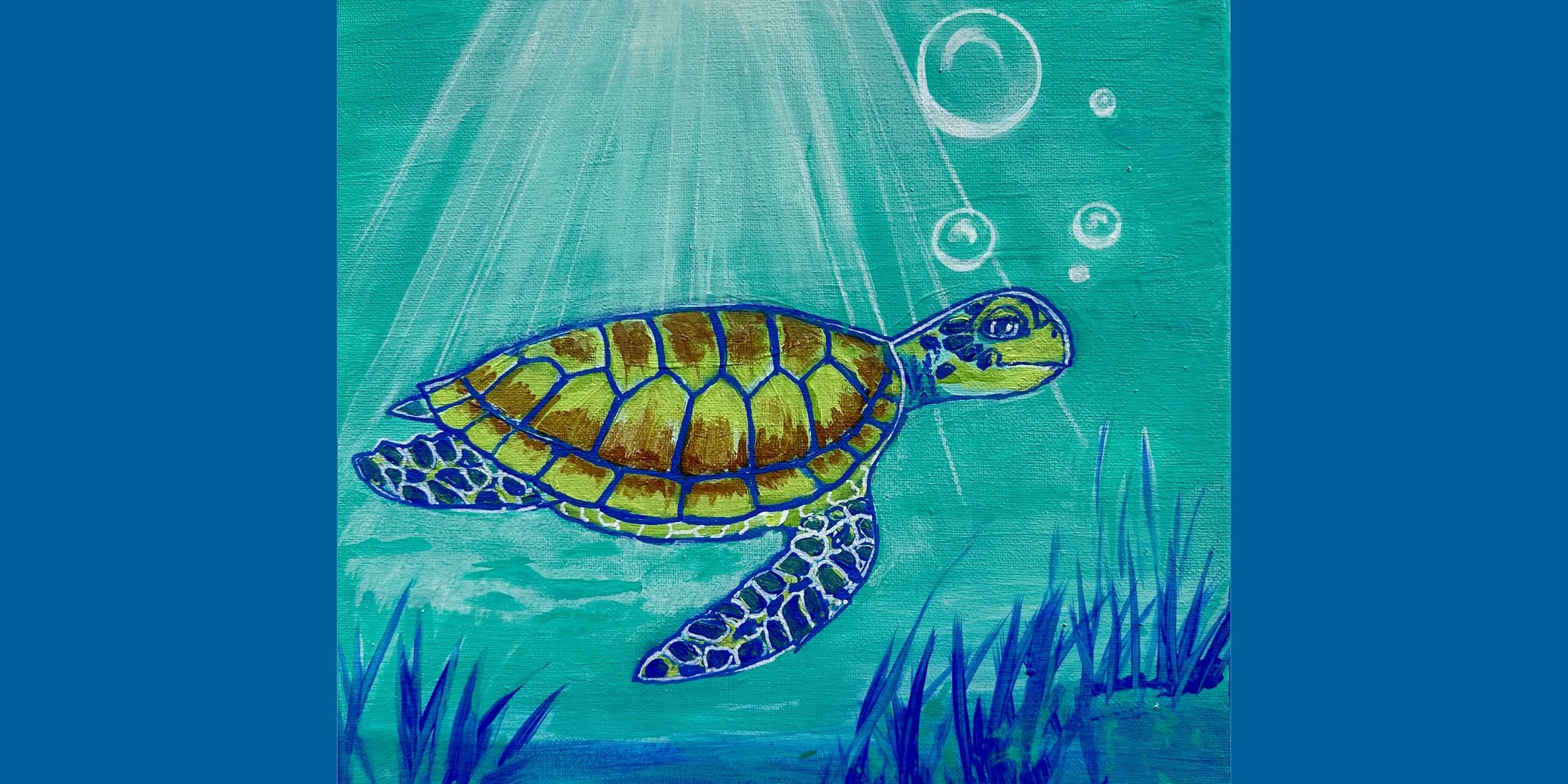 Dive into the vibrant world of acrylic painting as you create a colorful underwater sea turtle scene. In this engaging, step-by-step workshop, students will be guided through the process of building a painting from background to subject, using bold color and simple techniques to achieve a striking result.